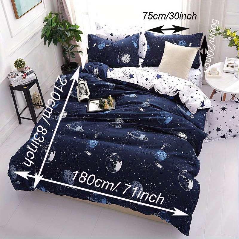 TEMU 3pcs 패션 이불 커버 세트, 만화 스타 우주 행성 패턴 침구 세트, 부드럽고 편안한 통기성 이불 커버, 침실 객실 기숙사 장식 (1 * 이불 커버 + 2 * 베갯잇, 코어 없음)