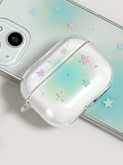 [모나니 스튜디오] [에어팟/버즈] 민트 별 여름 에어팟 프로 3 2 4 버즈 프로 투명 하드 이어폰 케이스 airpods case