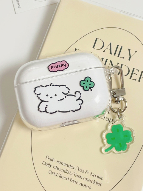 [모나니 스튜디오] [에어팟/버즈] 강아지 클로버 행운 에어팟 프로 3 2 4 버즈 프로 투명 하드 이어폰 케이스 airpods case