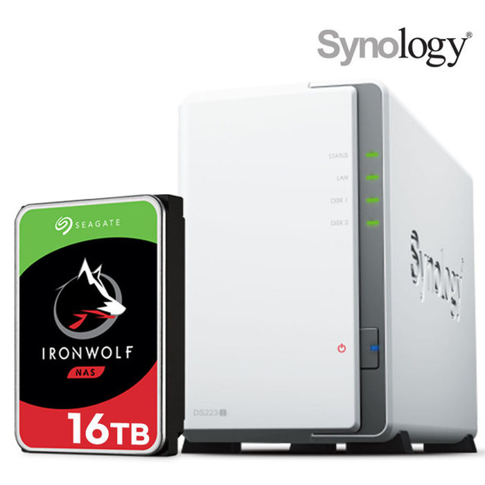 시놀로지 시놀로지 나스 DS223j 2Bay NAS 아이언울프 16TBX1EA 하드디스크 합본