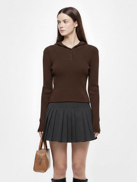 [챈세스노이 포 우먼] 어반 후디드 하프 버튼 니트 (차콜,브라운)/W261TP05