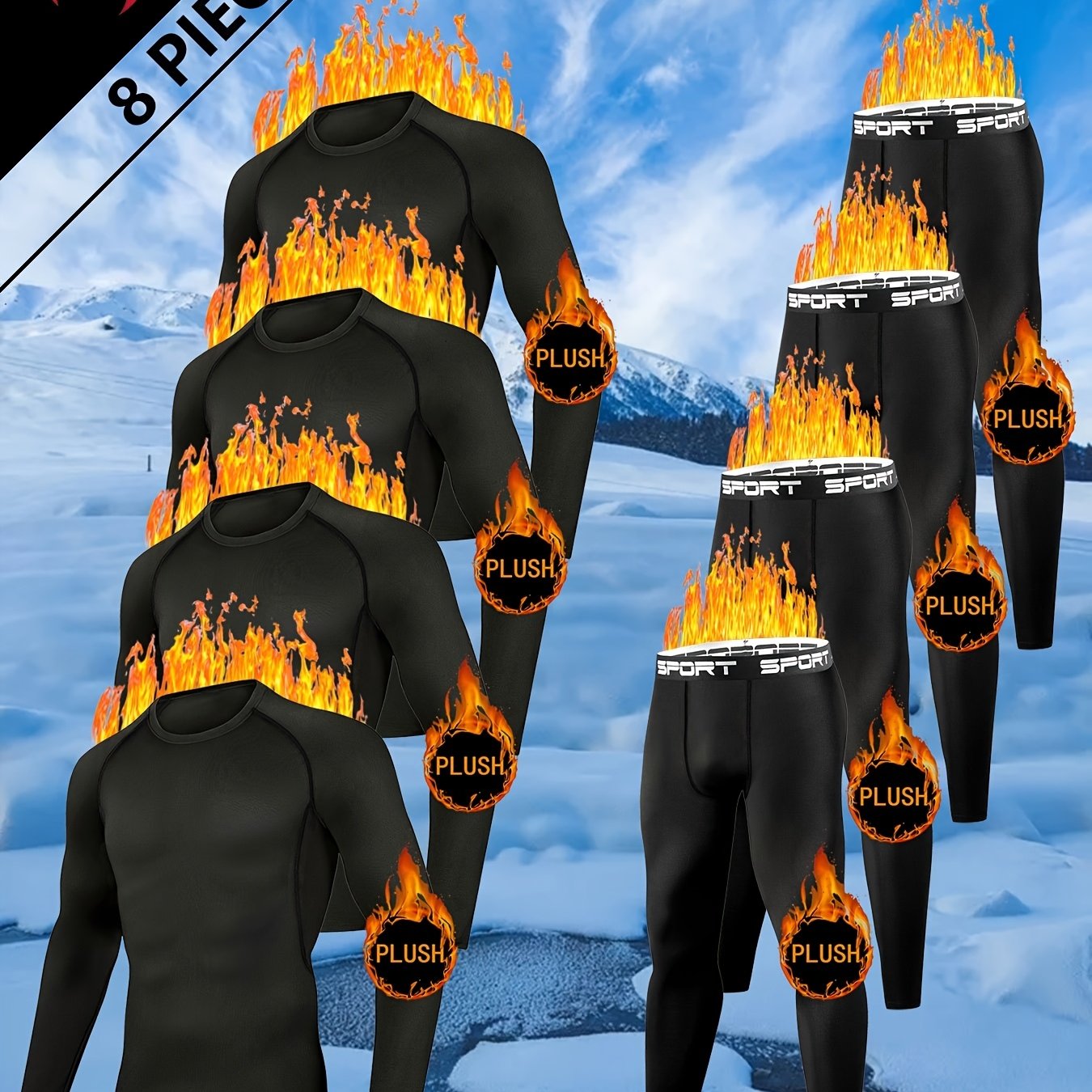 TEMU 8피스 남성용 보온 컴프레션 세트 - 두꺼운 방한 운동 & 스포츠 의상, 긴소매 상의 & 바지, 통기성 스판덱스 & 폴리에스터 혼방, 피트니스 매니아, 퍼포먼스 웨어, 내구성 있는 구조, 세련된 디자인, 트레이닝 장비|헬스복