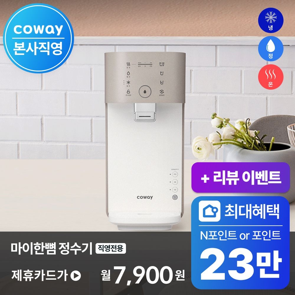 핸디형 12개월 반려 정수기 작지만 강한 진짜 스마트 직수 냉온수 정화기 무타공 무전원