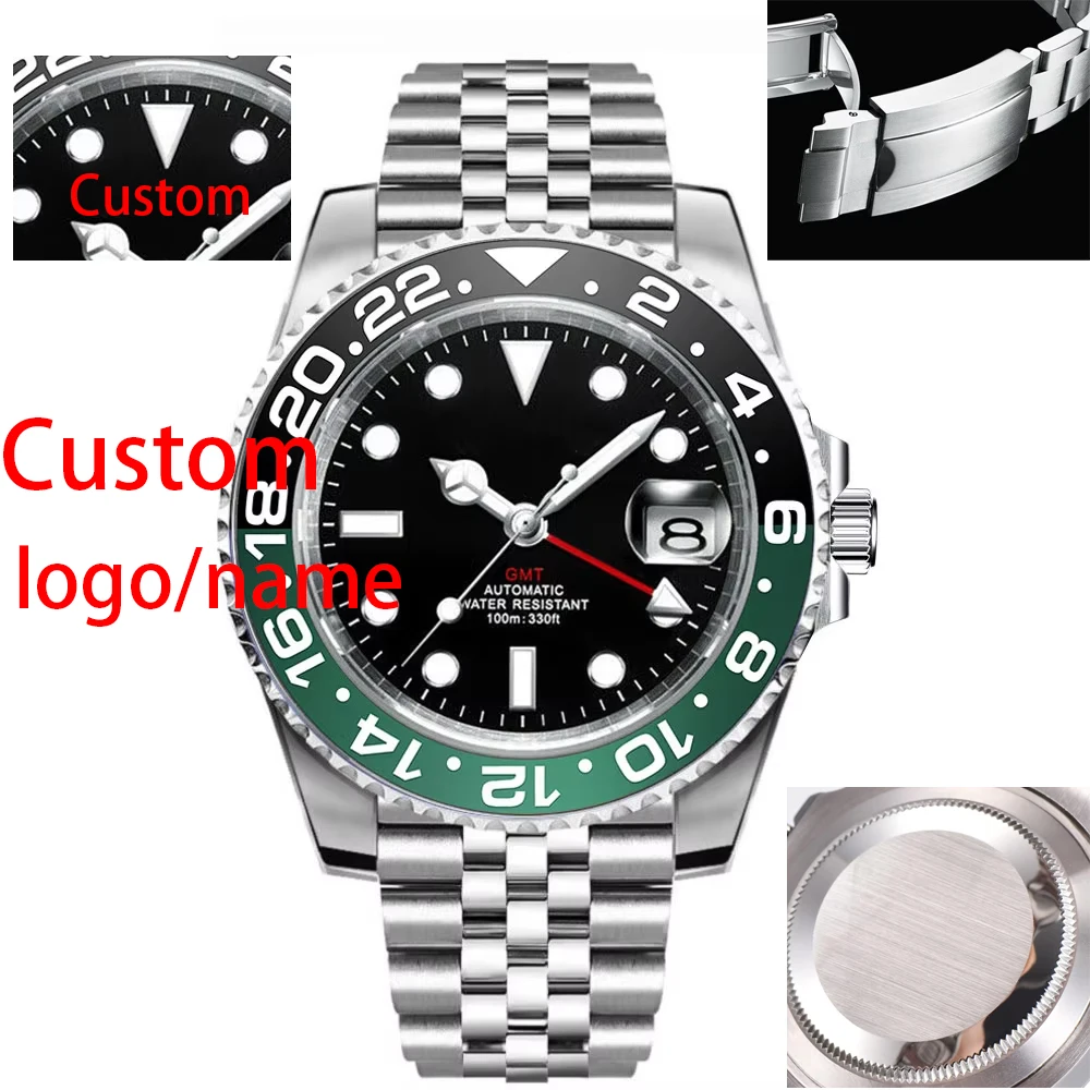 새로운 사용자 정의 남자 Corgeut 로고 기계식 손목 시계 빛나는 GMT 시계 NH34Movement 사파이어 10Bar 남성 시계 Reloj Hombre