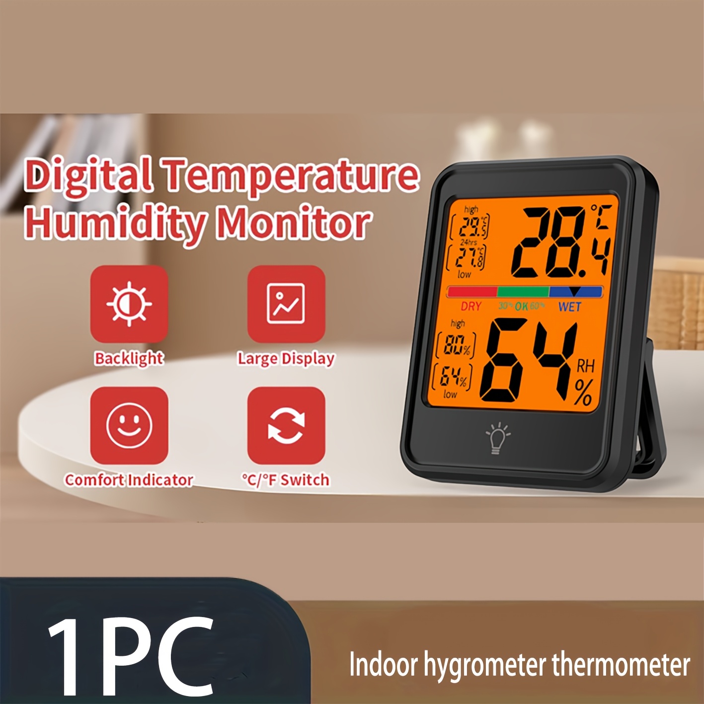 TEMU 1 디지털 실내 온습도계, 최대 및 미니 기록 백라이트 포함, 온실, 침실 및 사무실에 적합, AAA 배터리 구동(포함되지 않음), 모던 온도계 | 간호용 디지털 온도계, 온도 및 습도 측정기, 실내 날씨 관측소