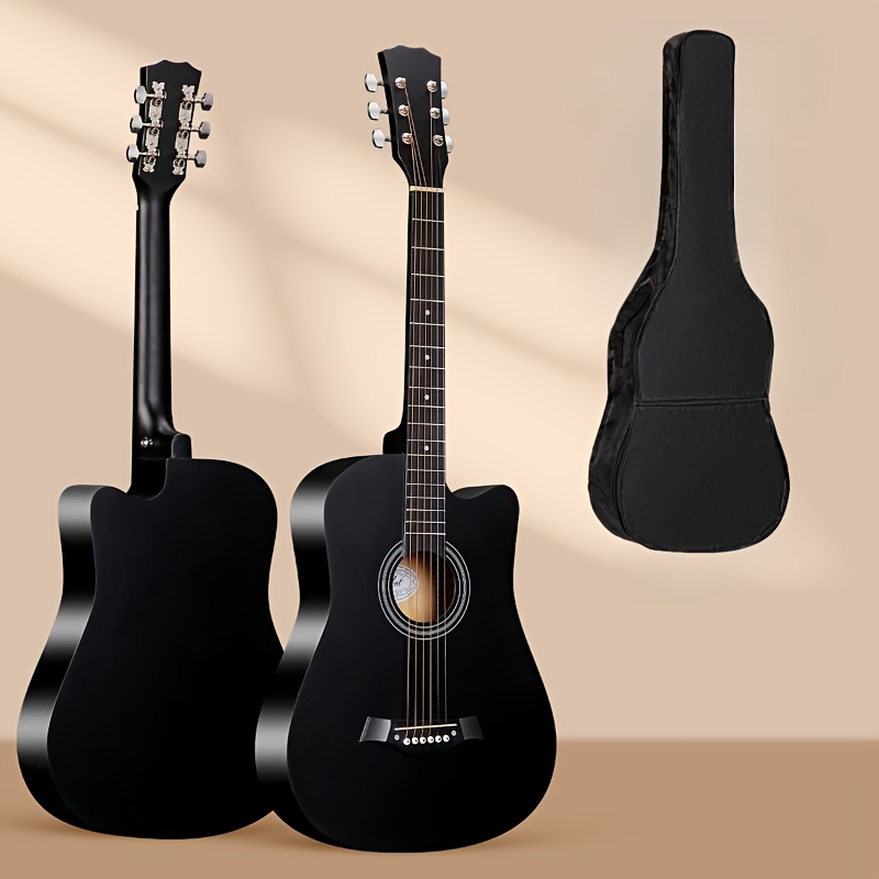 TEMU 프로페셔널 필수 38인치 어쿠스틱 기타, 매트 마감, 기그백 포함, 남녀 초보자 친화적 연습용 기타 선물, 포크 우드 기타 스타터 선물, 초보자부터 전문가까지 적합, 필수 여행용 악기
