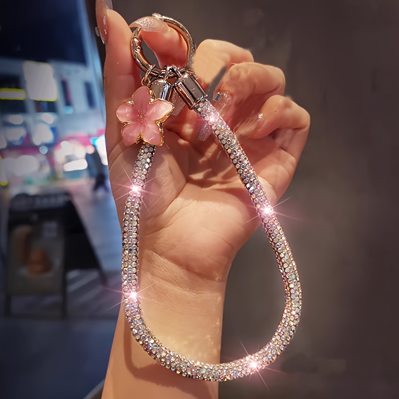 TEMU 1개 꽃무늬 폰 랜야드, 반짝이는 악센트 포함 - 우아한 화이트 & 핑크 플라워 디자인, 여성용 내구성 있는 플라스틱 손목 스트랩, 투명 접착 패드 포함, 열쇠 및 액세서리에 완벽, 폰 액세서리 | 꽃무늬 랜야드 | 반짝이는 악센트, 폰 랜야드, 걸이용 랜야드, 폰 코드, 키 랜야드, 모바일 폰용 랜야드, 폰 스트랩