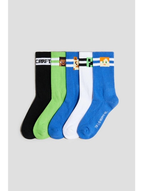 [에이치엔엠] 인타르시아 디테일 양말 5켤레 세트 블루/마인크래프트 1101327019