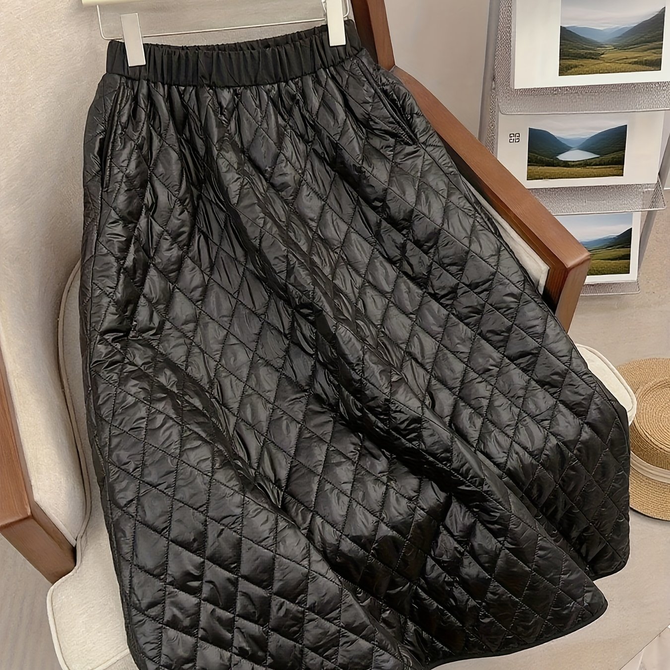 TEMU 여성용 봄 패션 신상 우아한 블랙 안감 스커트 - J-K 스타일 A라인 스커트 - 미디 길이, 두꺼운 미디 스커트, 보온성, 단색, 스타일리시한 아웃핏, 겨울용 스커트 | 플리츠 스커트 - 데일리 및 레저 아웃도어용