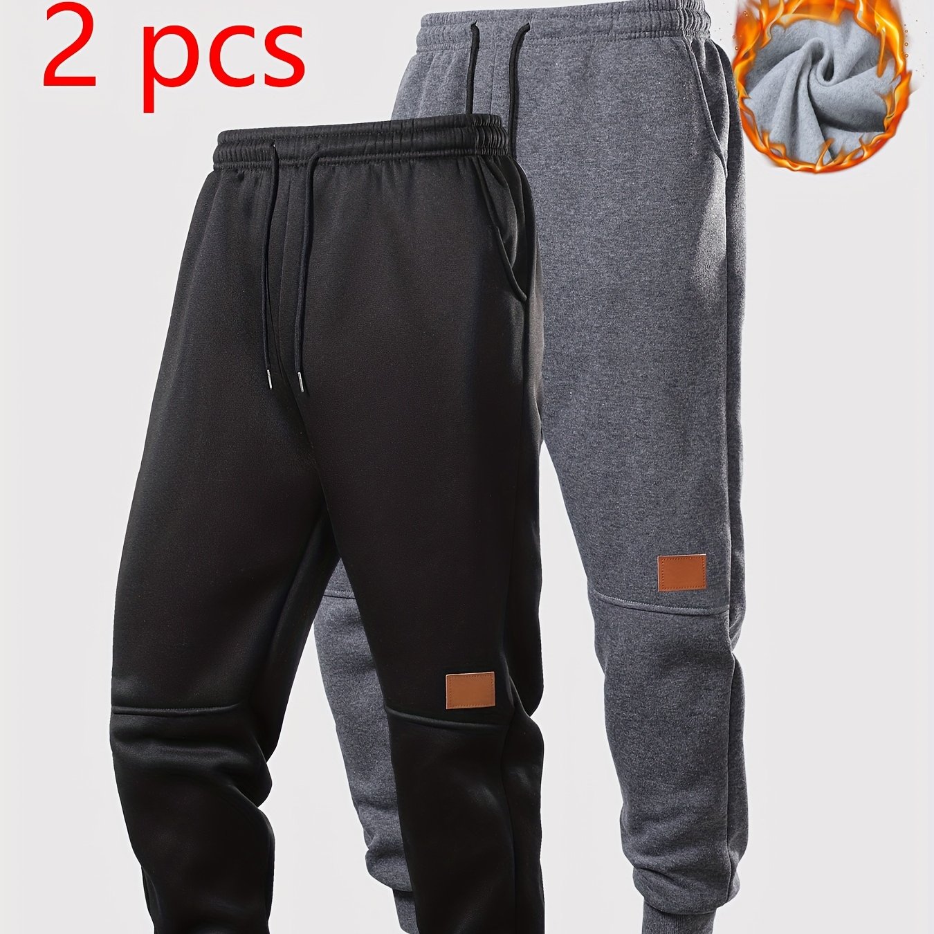 TEMU 남성용 보온 트레이닝 팬츠 2pcs - 겨울용 러닝 짐 조거 팬츠, 커프드 앵클, 다양한 컬러 옵션 (//그레이) | 세탁기 사용 가능한 피트니스, 캐주얼 및 야외 활동용 운동복