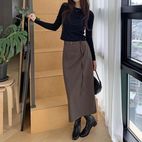 (~XXL까지) 아비트첼 H라인 벨트 롱스커트 가을 슬림핏 신축성 하객룩 오피스룩 모임룩 격식룩 빅사이즈