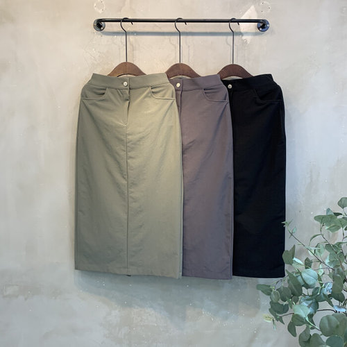데일리앤 마리 봄 가을 밴딩 잔골지 스판 H라인 일자 트임 롱 스커트