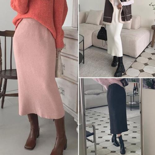[유야]여성 H라인 밴딩 골지 니트 롱스커트 -FSK0135- 겨울