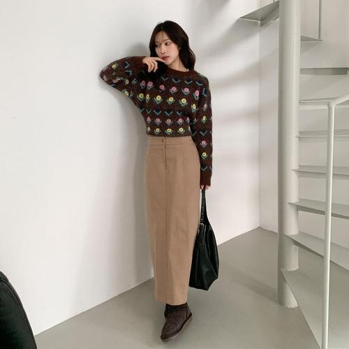 메이킹유 [7color] 소프트 포근 보들 롱 H라인 일자핏 밴딩 니트 스커트 WB9061라츠니트스커트