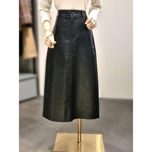 데일리앤 센트 일자핏 H라인 무지 스판 트임 롱 스커트 봄 가을