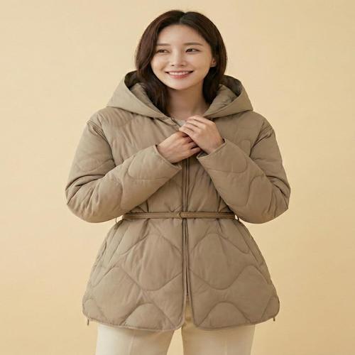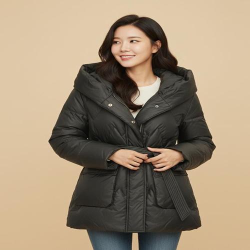 [꼼빠니아][꼼빠니아]후드 허리끈 덕다운 점퍼-CW24IH7002083A