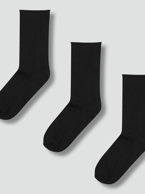 [자주 라이프웨어] [JAJU/자주] 여 모달 롤 장목 양말 3족_블랙
