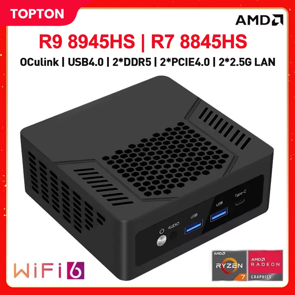 토폰 오쿨링크 게이밍 미니 PC AMD 라이젠 9 8945HS R7 8845HS USB4.0 2x2.5G LAN 2xPCIe4.0 2xDDR5 윈도우 11 NUC 미니 컴퓨터 WiFi6