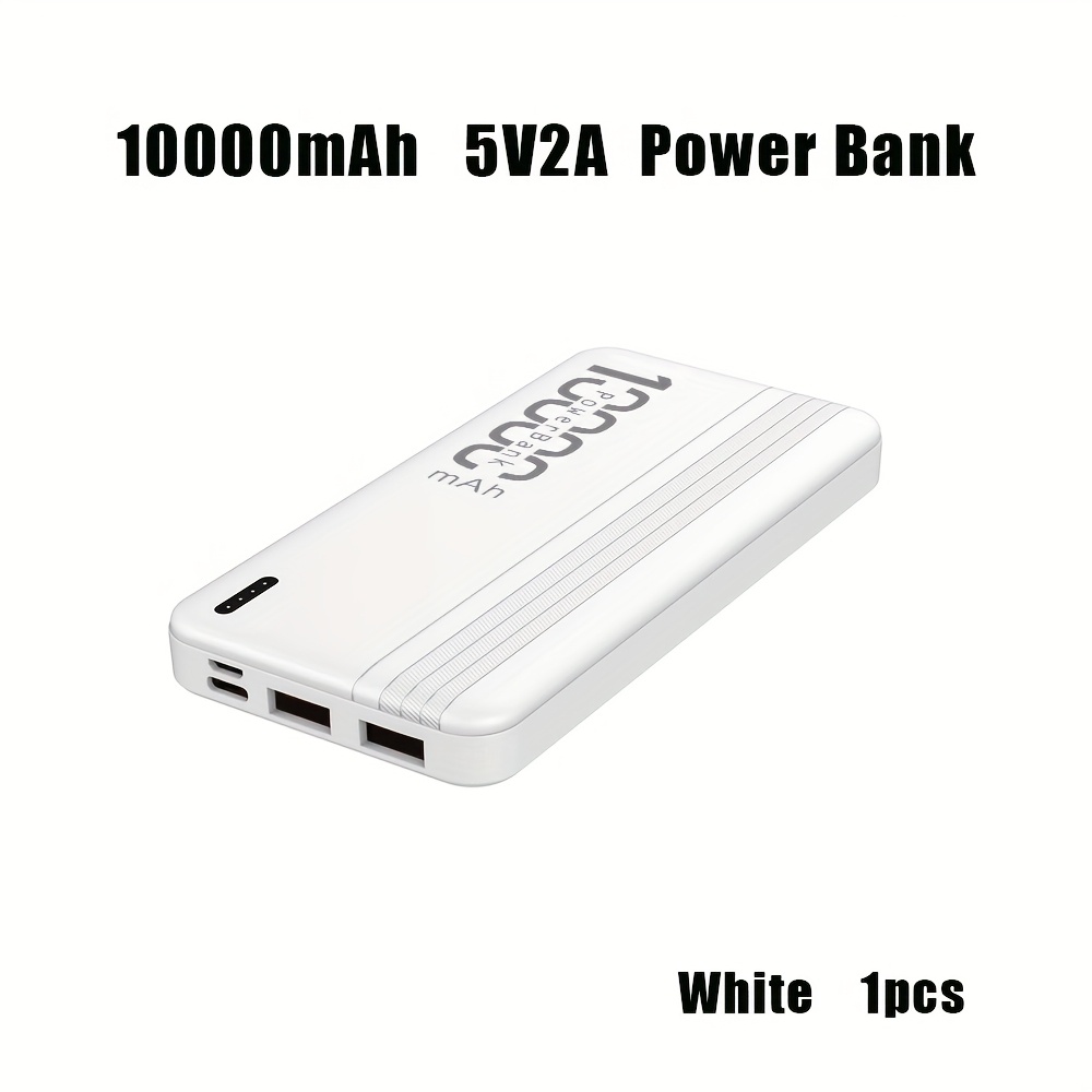TEMU 듀얼 USB 포트 5V2A 10000mAh, 휴대폰, 블루투스 스피커, USB 미니 핸드헬드 팬/데스크탑 팬, MP3 및 기타 USB 장치용, 야외 비상 배터리 팩, 슬림 디자인, 휴대 간편
