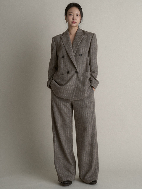 [구테] Logan 핀스트라이프 와이드 팬츠 _ 그레이브라운