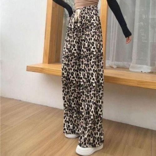 [셀러허브_여성트랜드패션]Rly 쿨팬츠 와이드 그리드 레오파드 파드 밴딩 릴렉