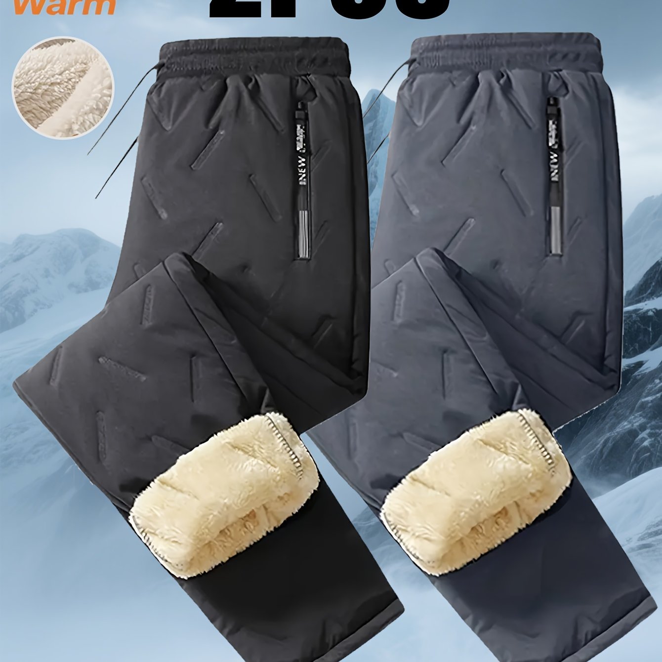 TEMU 남성용 보온 플리스 안감 겨울바지 2pcs - 헤비듀티 두꺼운 이완핏 직다리 눈바지 집업포켓 & 드로우끈 허리, 세탁기 사용 가능, 블랙/브라운/베이지색 사계절 및 일상적인 추위에 대한 내구성 있는 캐주얼 윈터트러서즈와 기능형 포켓으로 따뜻함과 편안함을 제공하는 슬키링·스노보딩용
