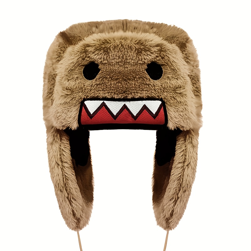 TEMU 1개 두꺼운 따뜻한 캐릭터 플러시 이어플랩 모자 3색 - 조절 가능한 끈 겨울 비니, 부드러운 플리스 안감으로 추위 방지, 귀여운 얼굴 디자인, 생일 선물 및 신기한 액세서리, 내구성 있는, 계절별 착용,펑키 스타일,장난기 넘치는 액세서리,포근한 소재,손세탁 가능,야외 활동 애호가,휴일 쇼핑객