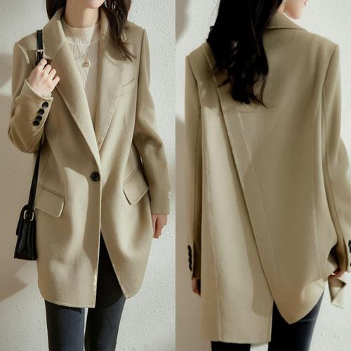 여성 테일러드 카라 뒷 사선절개 원버튼 하프 코트 WFG2K1G