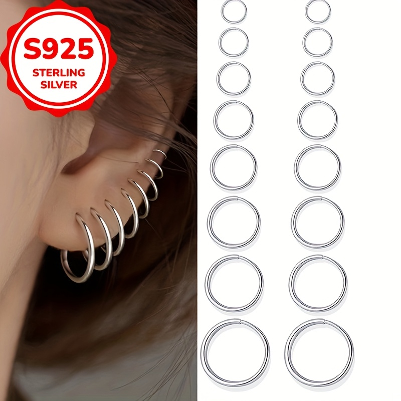 TEMU S925 은색 미니멀 스타일 귀걸이 1쌍 - 니치 인스 감성 부드러운 원형 뼈 스터드, 귀 피어싱용, 데일리 트렌디 주얼리, 우아한 디자인, 내구성 좋은 주얼리, 여성귀걸이, 귀고리, 실버귀걸이, 피어싱귀걸이, 링 귀걸이, 후프 귀걸이