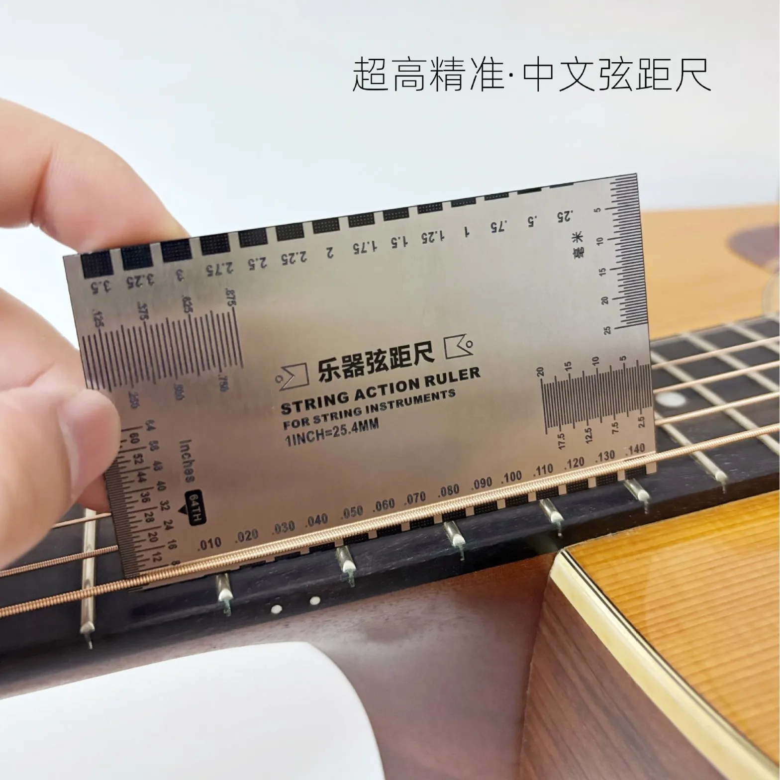 스테인레스 스틸 스트링 액션 게이지 룰러 기타 베이스 악기 수리 도구 실버