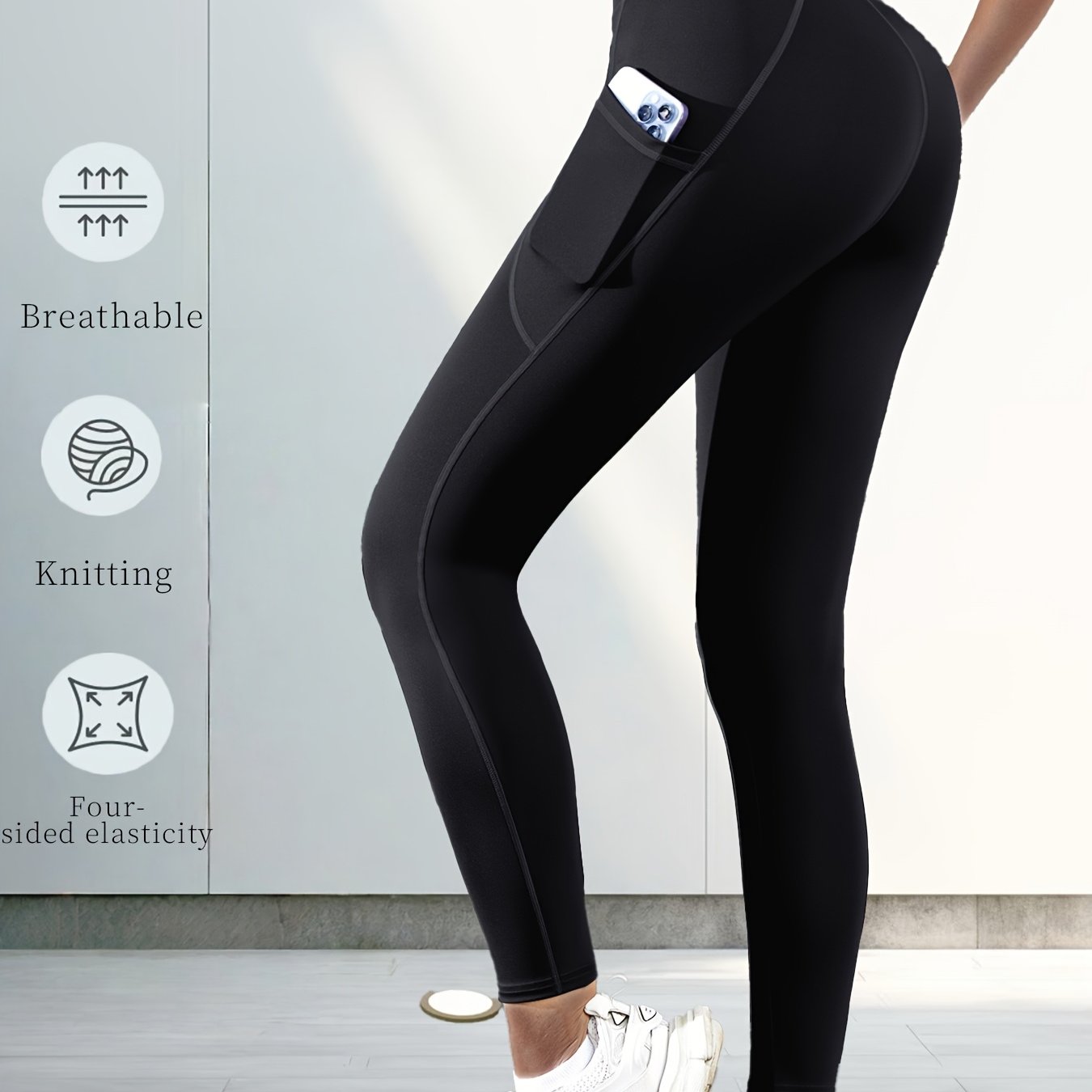 TEMU 여성용 하이웨이스트 요가 레깅스 - 슬림핏, 통기성 폴리에스터 및 엘라스테인 혼방, 사이드 포켓, 쉐이핑 기술, 러닝, 체육관 및 야외 활동에 편안함, 현대적인 레깅스 | 기능적 레깅스