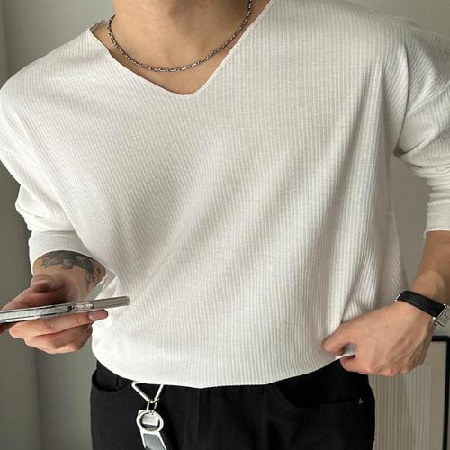 TEMU 남성 슬림핏 스트레치 V넥 긴팔 티셔츠 - 솔리드 컬러 리브 디테일, 가을/겨울 캐주얼 & 애슬레틱 탑, 손세탁/드라이클리닝, 데일리 웨어, 슬림 핏, 내구성 있는 소재, 젊은 전문가를 위한 겨울 의류, 모던 스타일, 부드러운 질감, 액티브 라이프스타일
