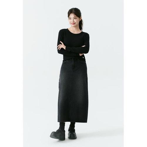 [잠뱅이][25FW] 여성) 블랙 난스판 카펜터 긴기장 데님 스커트 DK AP3DDK664-BK