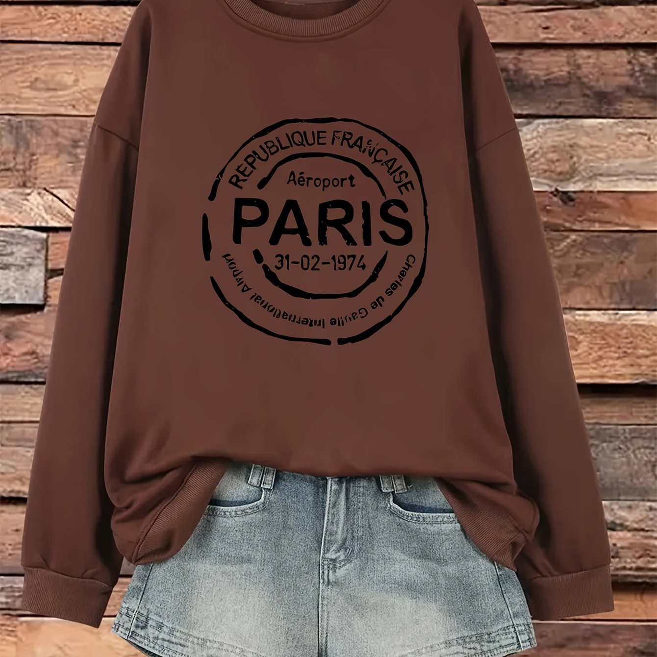 TEMU 가을과 겨울을 위한 캐주얼한 롱 슬리브 크루넥 스웨트셔츠, 여성 의류