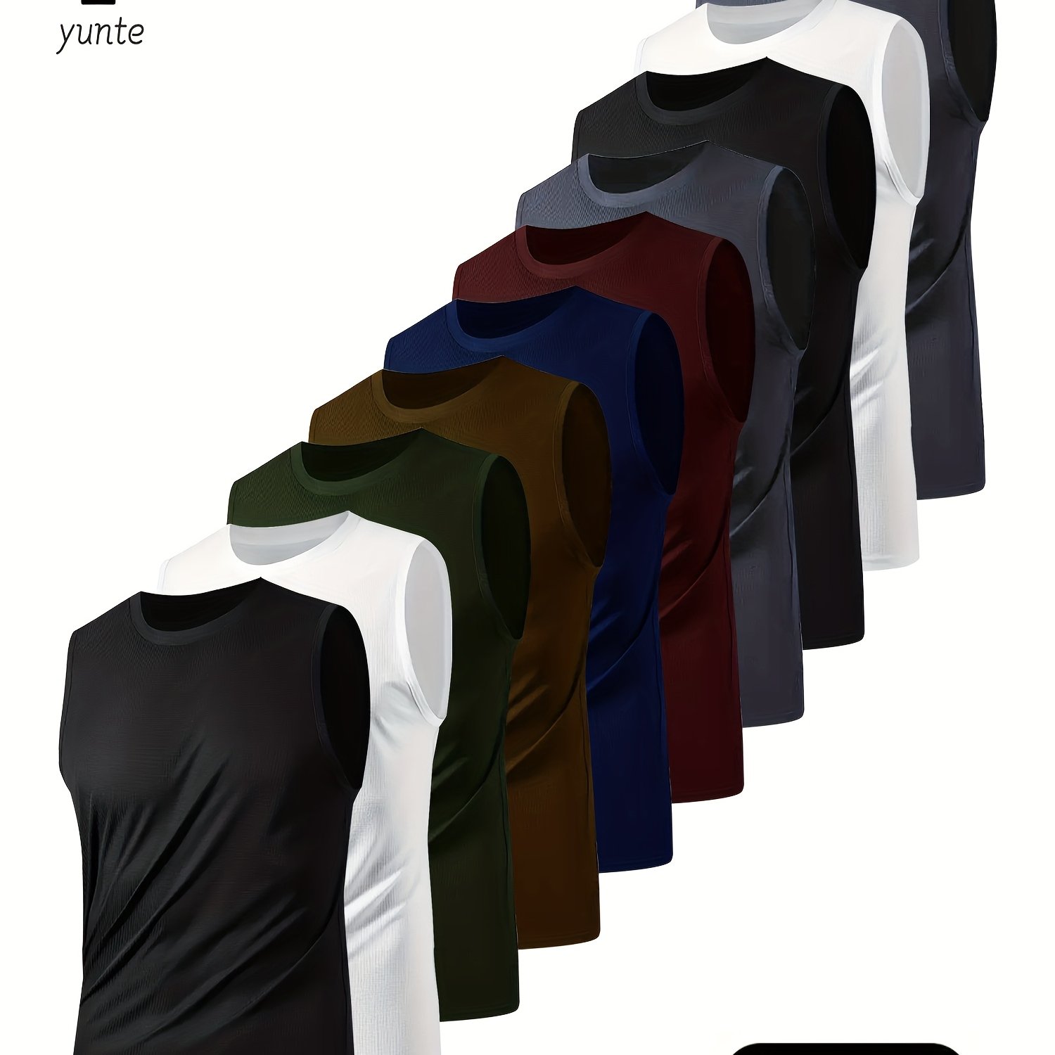 TEMU 10개 남성용 민소매 운동복 탑 - 통기성 좋고 가벼우며 빠르게 건조되는 크루 넥 탱크탑, 체육관, 러닝 및 운동용 - 루즈핏, 단색(검정, 흰색, 육군 녹색, 카키, 네이비, 빨강, 회색) - 봄/여름/가을에 적합한 체육관 의류