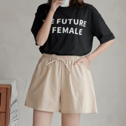 [옷자락]여자 큐롯숏팬츠 허리끈 밴딩 여름 a라인 린넨 반바지