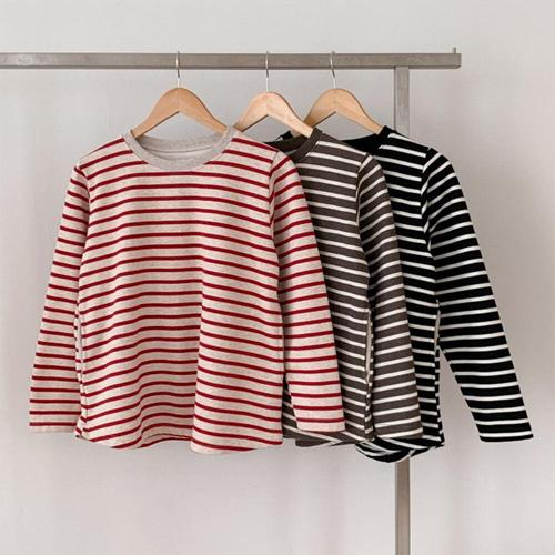 [옷자락]여성 털안감 스트라이프 루즈핏 포켓 A라인 면 티셔츠