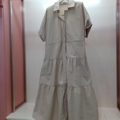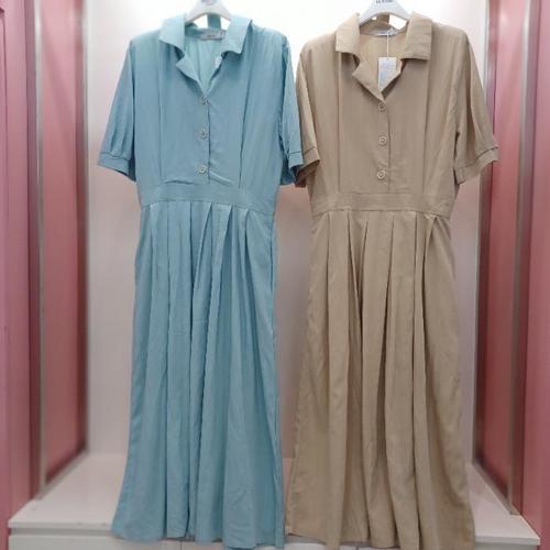[라티움]Latium HC06 A라인 캉캉 플레어 앞오픈 5부 주머니 카라 반팔 롱원피스 T2523op08B (33255805)