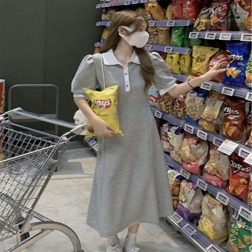 [셀럽하우스]러블리 QAWR9944 카라 반팔 롱원피스 퍼프소매 A라인 2컬러