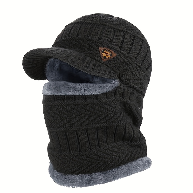 TEMU 남성용 극한 추위 방지 니트 비니 모자 - 플랩 커버리지, 부드러운 소재 외부 - 아빠, 할아버지, 노인용 - 겨울철, 스키, 하이킹, 아버지의 날 선물 (블랙), 야외 활동, 귀 보호, 플러시 안감, 할아버지 액세서리|등산모자