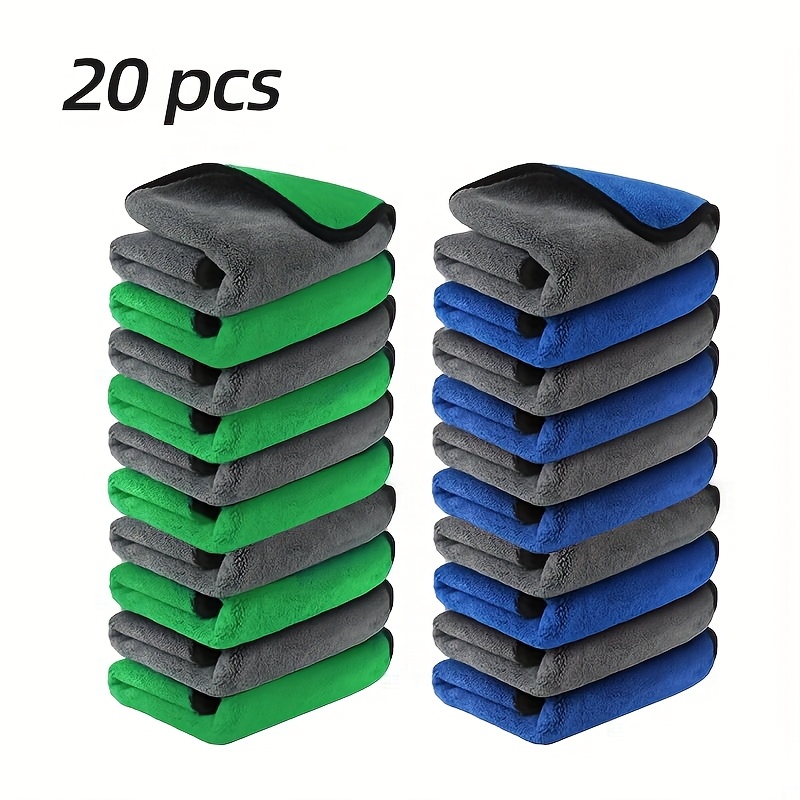 TEMU 20 Quick-Dry 흡수성 내구성 있는 마이크로파이버 자동차 청소 타월, 자동차 세부 작업에 적합, 얼룩 제거 능력, 고밀도 코랄 플리스, 쉽게 청소, 빠른 흡수 청소용 천에 사용