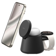 벨킨 울트라차지 3in1 Qi2 25W 모듈형 초고속 무선 충전 독 WIZ052krBK, 블랙, 1개