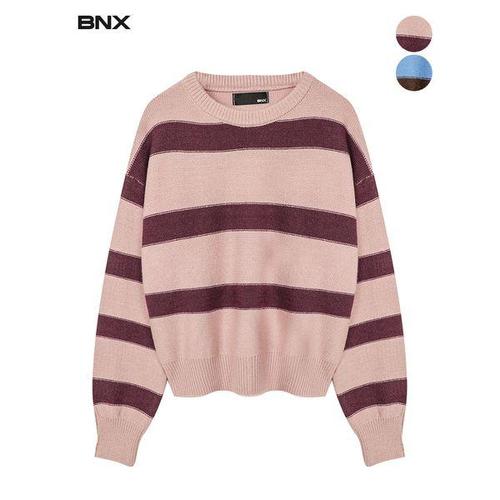 [BNX]여성 라운드넥 스트라이프 배색 니트