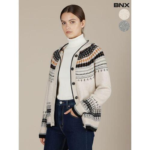 [BNX]여성 울 혼방 노르딕 후드 가디건