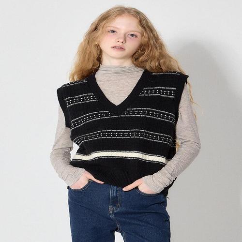 보니스팍스 자가드 패턴 라운드 버튼업 니트 베스트 (XO4VW011L0)