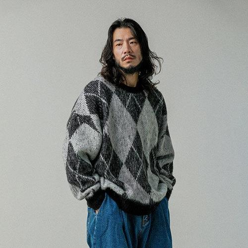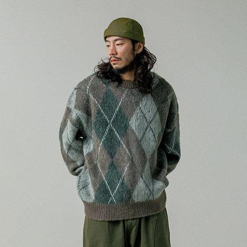 [러기드하우스]러기드하우스 브람스 아가일 헤어리 울 니트 카키