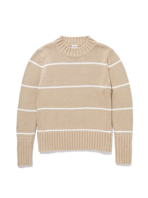 [큘] THE TATUM SWEATER - SAND/WHITE MINISTRIPE