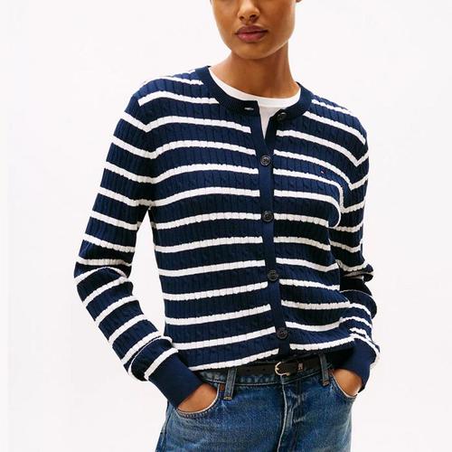 [해외배송] 타미 여성 스트라이프 케이블 니트 가디건 Dark Blue