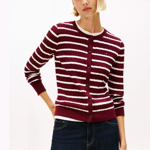 [해외배송] 타미 여성 스트라이프 케이블 니트 가디건 Burgundy