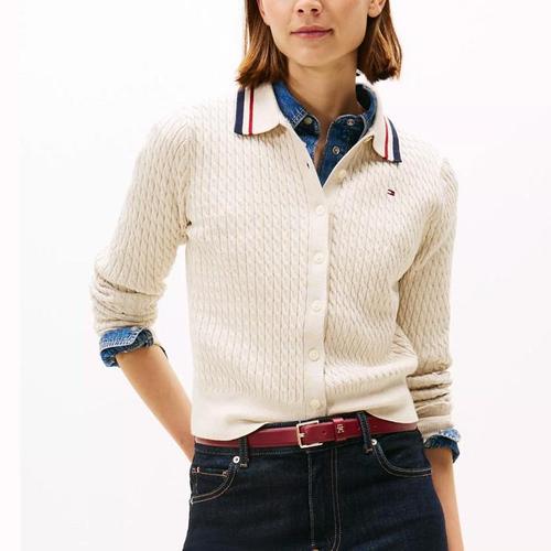 [해외배송] 타미 여성 케이블 니트 폴로 가디건 Oatmeal